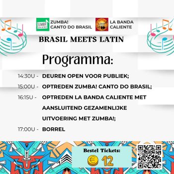 Op 12 april kun je genieten van Latin muziek en Braziliaanse muziek. Zumba! Canto do Brasil zingt samen met La Banda Caliente tijdens Brasil Meets Latin. Bestel kaartjes via deze link.